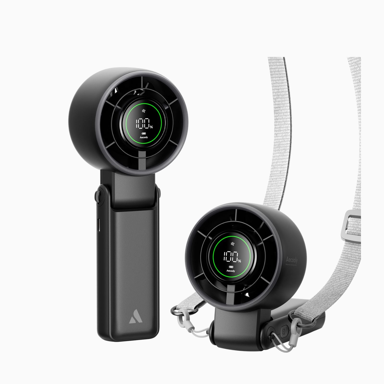 - Aecooly Portable Halo Fan is designed for versatility—use it handheld, on a desktop, or hands-free with the neck strap. It effortlessly fits into your routine, whether you’re commuting, working, or enjoying the outdoors.