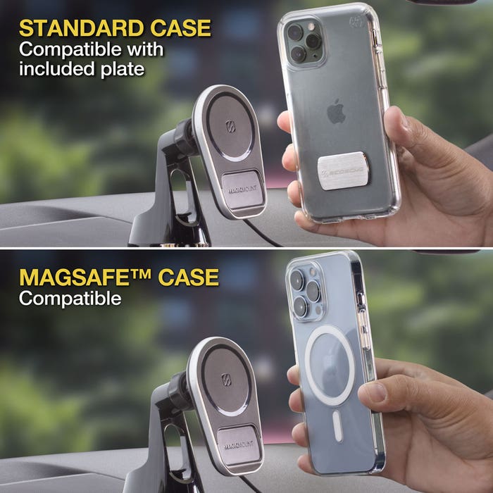 • Our specially designed mount head allows you to safely secure and wirelessly charge an iPhone 12 and later with MagSafe without having to use a MagicPlate