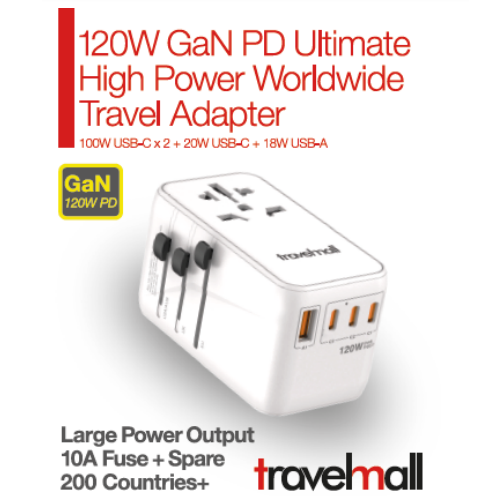 120W GaN PD 4 USBs Ultimate Travel Adaptor, White