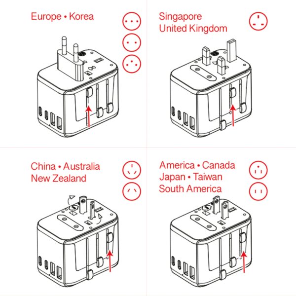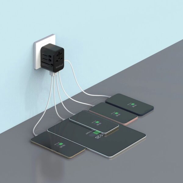 High Performance 30W PD World Travel Adaptor with 2 USB-A, 3 USB Type-C (one with 30WPD)