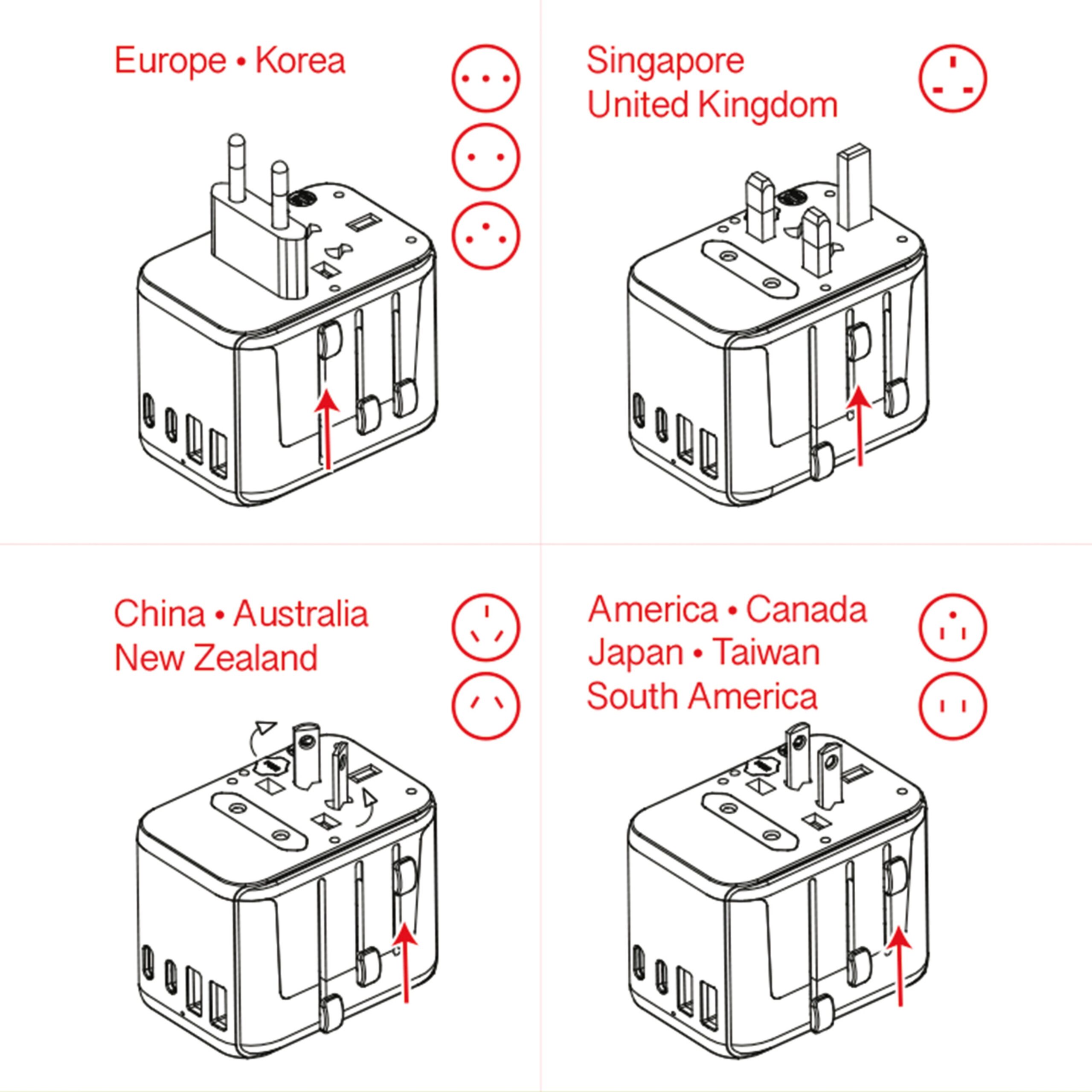 High Performance 30W PD World Travel Adaptor with 2 USB-A, 3 USB Type-C (one with 30WPD)